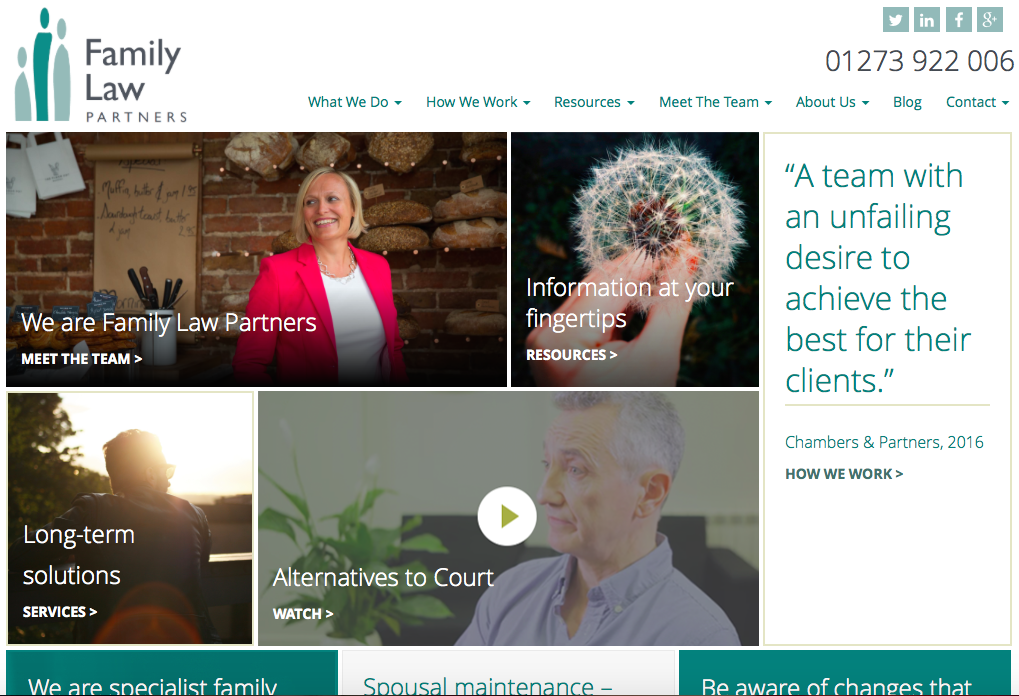 Since the launch of Family Law Partners in 2011, the firm’s website has been key to its success and has helped position the firm as the leading specialist family law firm in the South East. We have been working alongside Family Law Partners with the expert team, and fellow Brighton agency Pragmatic Web, on the design and development of a new responsive platform that builds on this success.